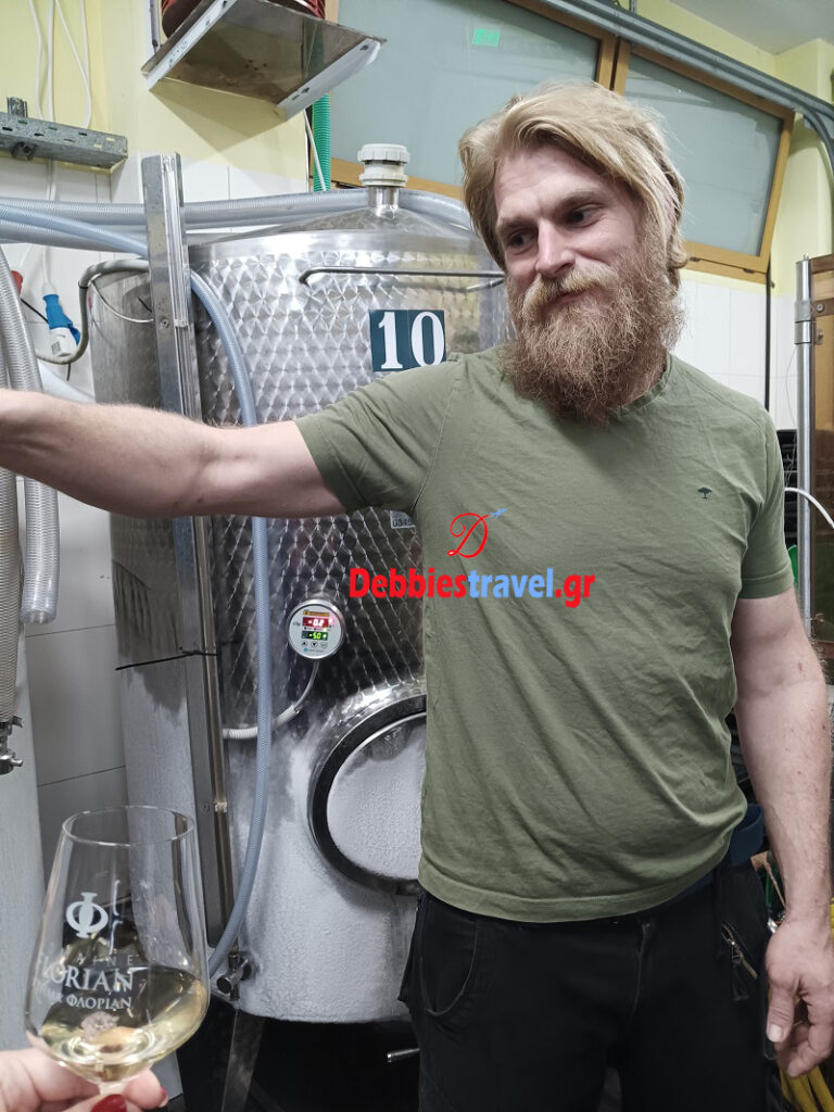 Κατά τη διάρκεια της παραμονής μας στο Κτήμα Φλόριαν, ξεναγηθήκαμε και στους χώρους του οινοποιείου, της παραγωγής και της υπόγειας κάβας.