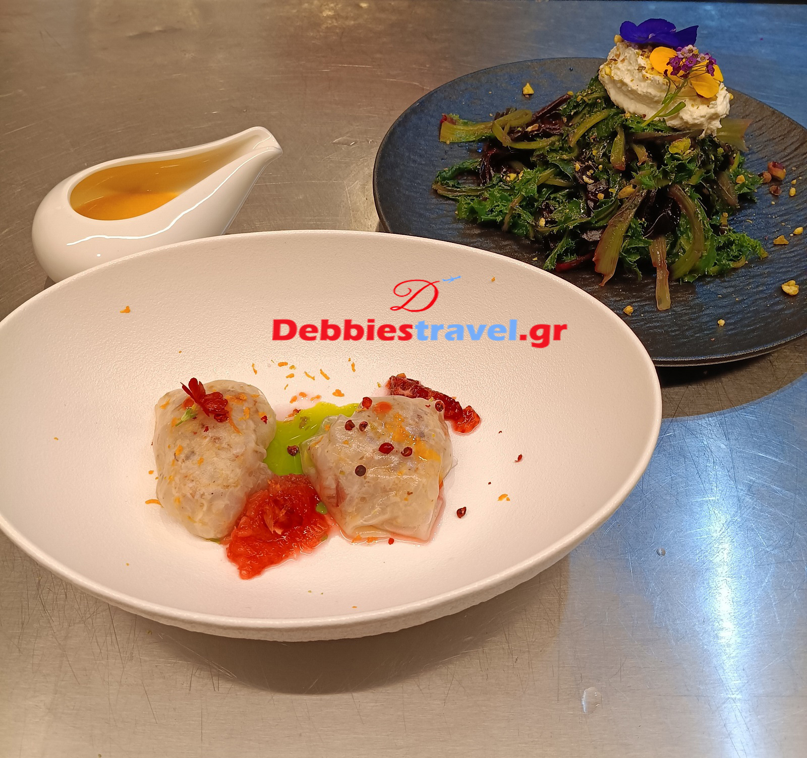 αλλά και γιουβαρλάκια με γαρίδα ταρτάρ μαριναρισμένη με εσπεριδοειδή, τυλιγμένη σε φύλλο από ρύζι η οποία περιχύνεται με αυγολέμονο.