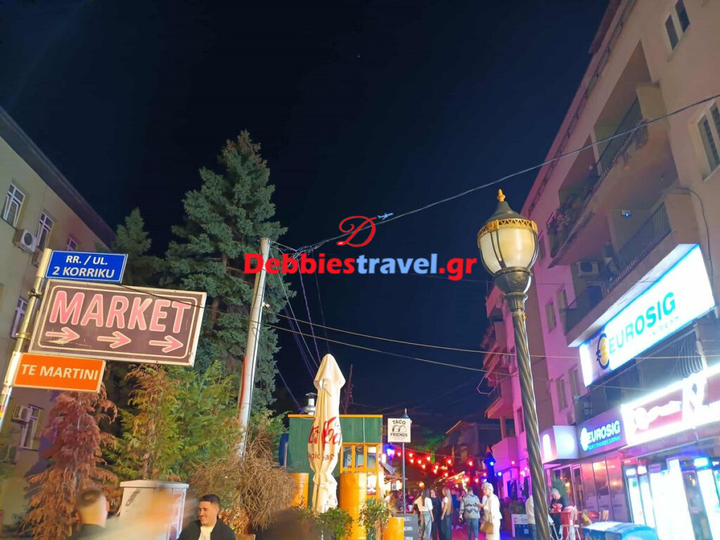 Διασχίζουμε τον φαρδύ πεζόδρομο όπου δεξιά και αριστερά έχει μαγαζιά για καφέ, φαγητό, γλυκά. Φτάνουμε στο τέρμα του πεζόδρομου, εκεί όπου βρίσκεται το Εθνικό θέατρο ωστόσο στις μέρες μας ανακατασκευάζεται (σ.σ. υπάρχουν άλλα δυο θέατρα στην πόλη) καθώς και ένα κατάστημα επώνυμης αλυσίδας ρούχων που στεγάζεται σ’ ένα ενδιαφέρον αρχιτεκτονικά κτίριο, ο έφιππος ανδριάντας του εθνικού ήρωα των Αλβανών Σκετέρμπεη (ή Γεώργιος Καστριώτης) ενώ λίγο πιο κάτω στο πλάι θα δούμε το άγαλμα της Μητέρας Τερέζας και από την απέναντι πλευρά το υπουργείο Πολιτισμού και ένα πολυτελές ξενοδοχείο.