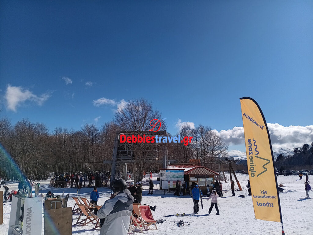 Βρισκόμαστε στα 1.647 μ., εκεί όπου βρίσκεται η βάση του τριθέσιου αναβατήρα «Φίλιππος». Ένα μικρό σαλέ – καντίνα, ενοικιάσεις σκι και σχολή είναι το σκηνικό σ’ εκείνο το υψόμετρο.